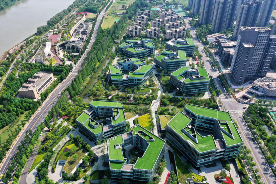 园区内自行车专用道、步行道蜿蜒交错,连接各处,鼓励短距离“零碳出行”;大型园区设置智能交通系统,提供多元出行选择,无缝衔接园区内外交通,开展绿色出行“最后一公里”。
