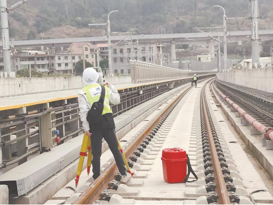 福州市勘测院有限公司技术人员在地铁轨行区测绘。 受访单位供图