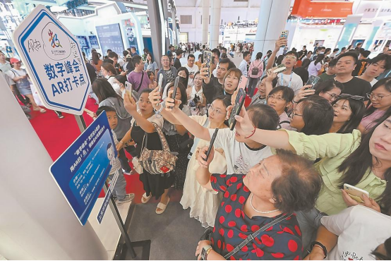 数字中国建设峰会为福建数字化发展注入新动能。图为2024年数字中国建设峰会期间,观众纷纷到虚拟仿真技术展厅打卡。记者 游庆辉 摄