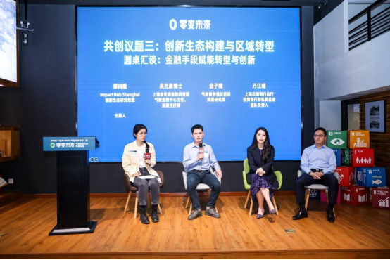 “创新生态构建与区域转型”议题聚焦“绿色金融支持”与“区域转型需求”两个方向进行圆桌探讨。气候创新的发展与生态构建离不开绿色债券、碳金融、转型金融等创新金融工具与手段的支持。金融手段能够解决气候技术研发和商业化过程中的资金瓶颈,从而加快气候创新技术的迭代速度。围绕“金融手段赋能转型与创新”主题,活动邀请来自上海金司南金融研究院、气候债券倡议组织、上海农商银行总行的三位嘉宾,聚焦金融如何支持高排放行业的转型,以及如何支持提供技术服务的中小型初创企业跨过“死亡谷”,带来政策制定、智库研究和金融机构视角下的观点讨论与经验分享。