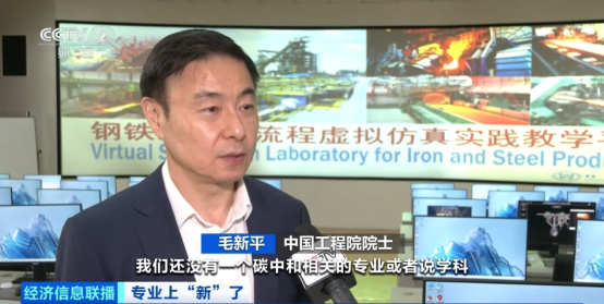 中国工程院院士 毛新平:要实现碳中和这个目标,它实际上是一个复杂的社会问题,有产业层面的,也有社会层面的,新专业从相关的基础科学研究到关键技术开发,到相关的企业的管理运营,以至于最后我们相关的碳经济和国际贸易等诸多方面都涉及。