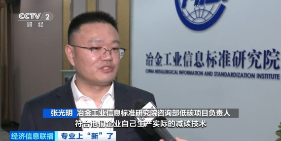 冶金工业信息标准研究院咨询部低碳项目负责人 张光明:从技术上来说,相关岗位的人员要帮助企业筛选符合他们企业自己生产实际的减碳技术。前面碳数据摸清楚之后,按照全国碳市场交易的规则,计算出来企业的碳排放量,然后帮助他们去制定数据质量的控制方案。